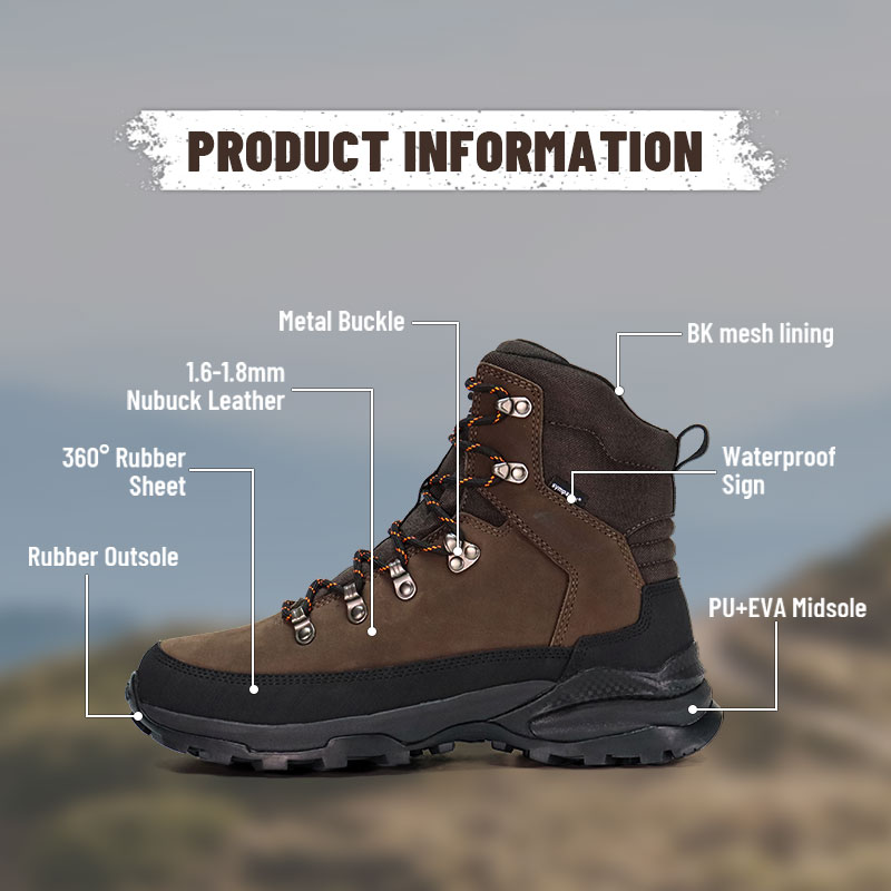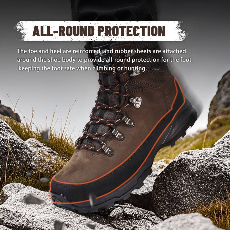 ခြေချောင်းများနှင့် ခြေဖနောင့်များကို အားဖြည့်ထားပြီး၊ ဖိနပ်ကိုယ်ထည်တစ်ဝိုက်တွင် ရာဘာအခင်းများ ကပ်ထားကာ ခြေထောက်ကို ဘက်စုံကာကွယ်ပေးကာ တောင်တက်ခြင်း သို့မဟုတ် အမဲလိုက်သည့်အခါ ခြေထောက်ကို ဘေးကင်းစေပါသည်။